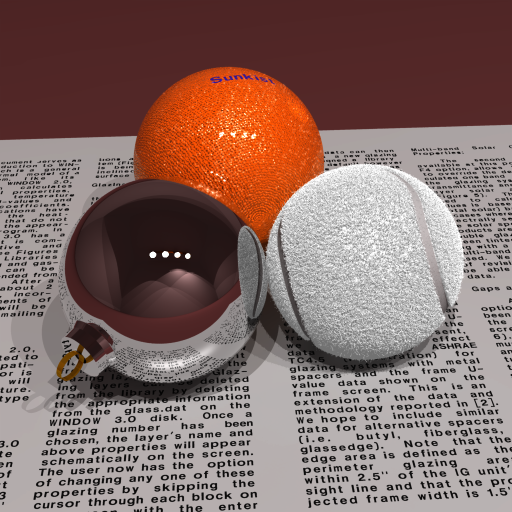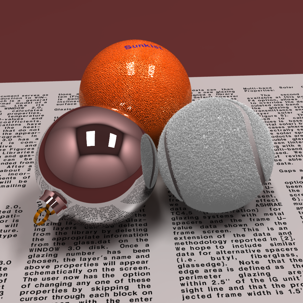 Radianceのディレクトリ ray/obj/ にシーンファイルが5つほど添付されています。